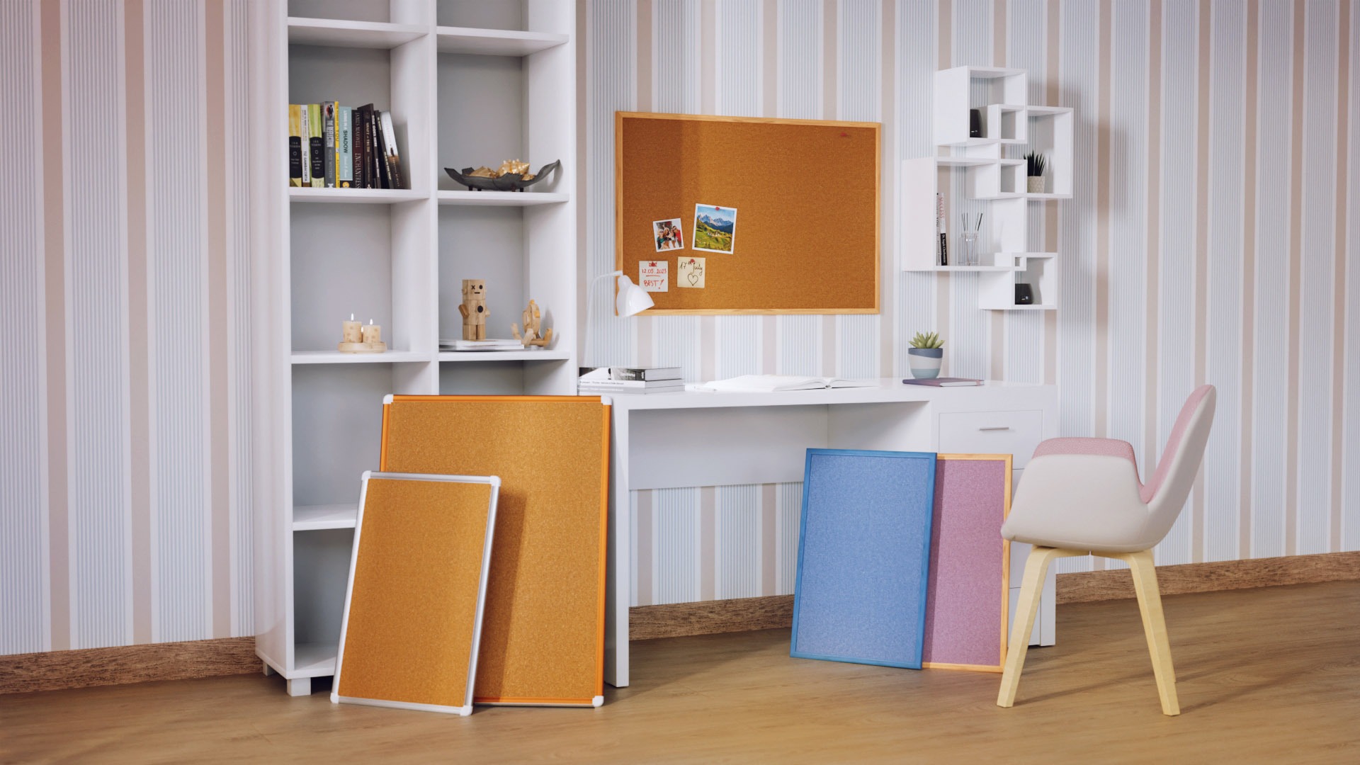 UNIVERZÁLNÍ – korkové tabule se díky svému univerzálnímu vzhledu a použití hodí kamkoli. Skvěle doplní kancelář, byt, dětský pokoj, bar nebo restauraci.